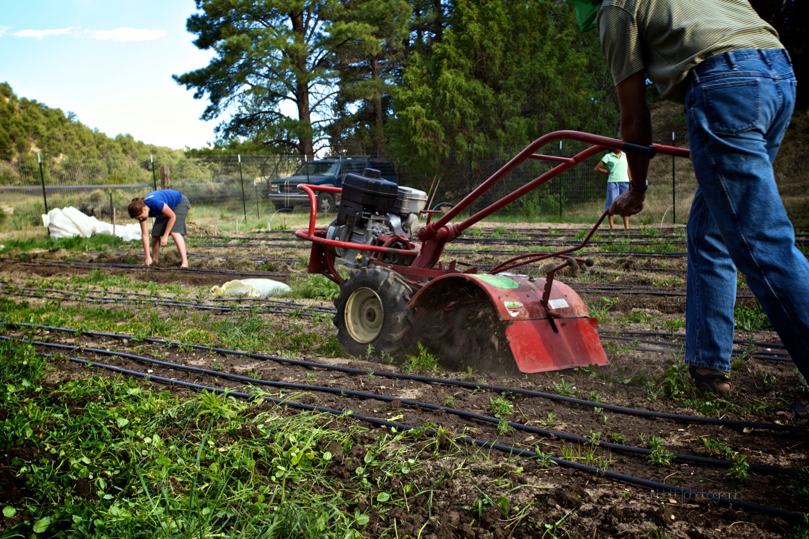 Leaning on my rake midway down 170 feet of row, I tell my sister dear with a wink that